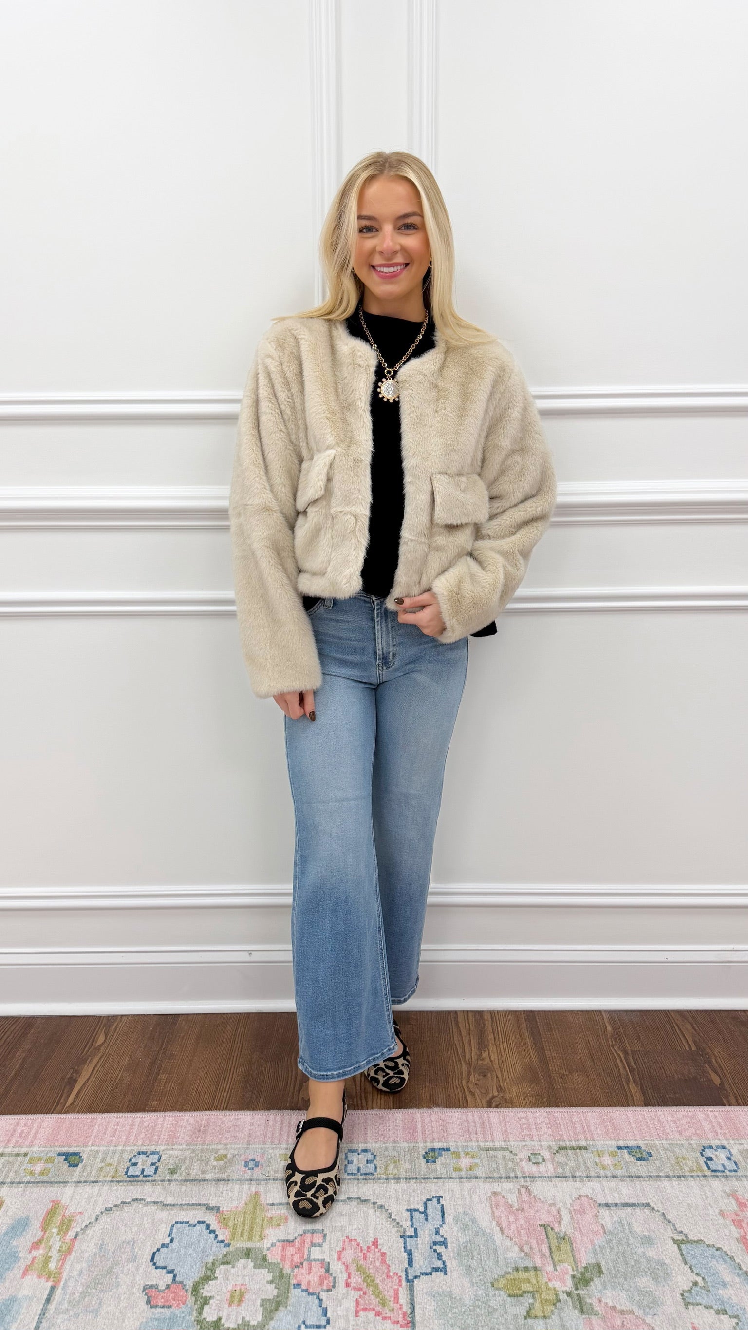 The Aria Fur Jacket is the luxe layer every wardrobe deserves. This statement piece elevates any outfit with its plush texture and sophisticated appeal, instantly transforming casual looks into polished ensembles. Available in sizes Small through Large and designed to fit true to size, you'll find your ideal fit with confidence. Layer it over dresses for evening elegance or pair with jeans for elevated everyday style. This versatile jacket adds that touch of glamour you've been craving, making it the investment piece that keeps giving season after season.