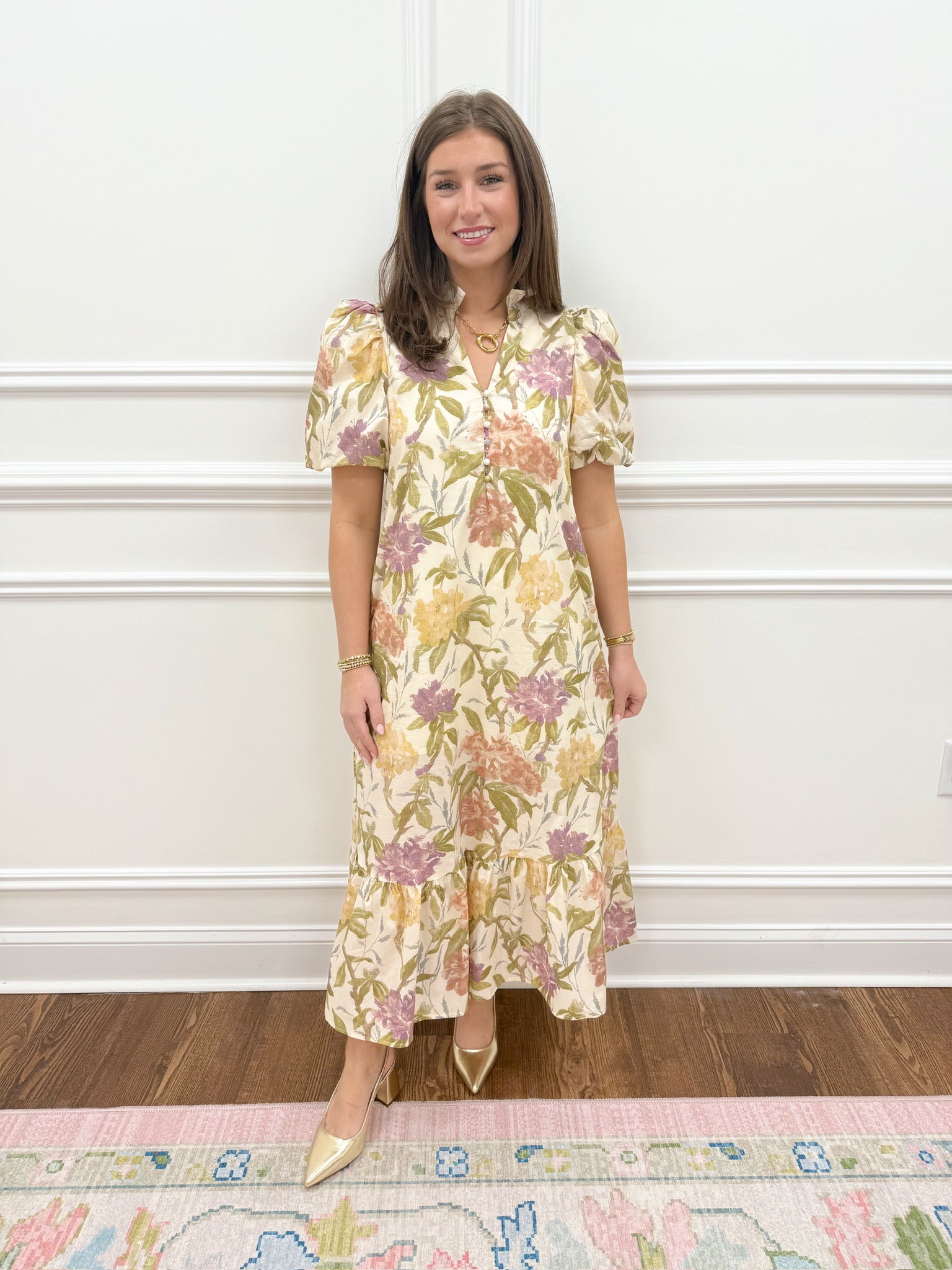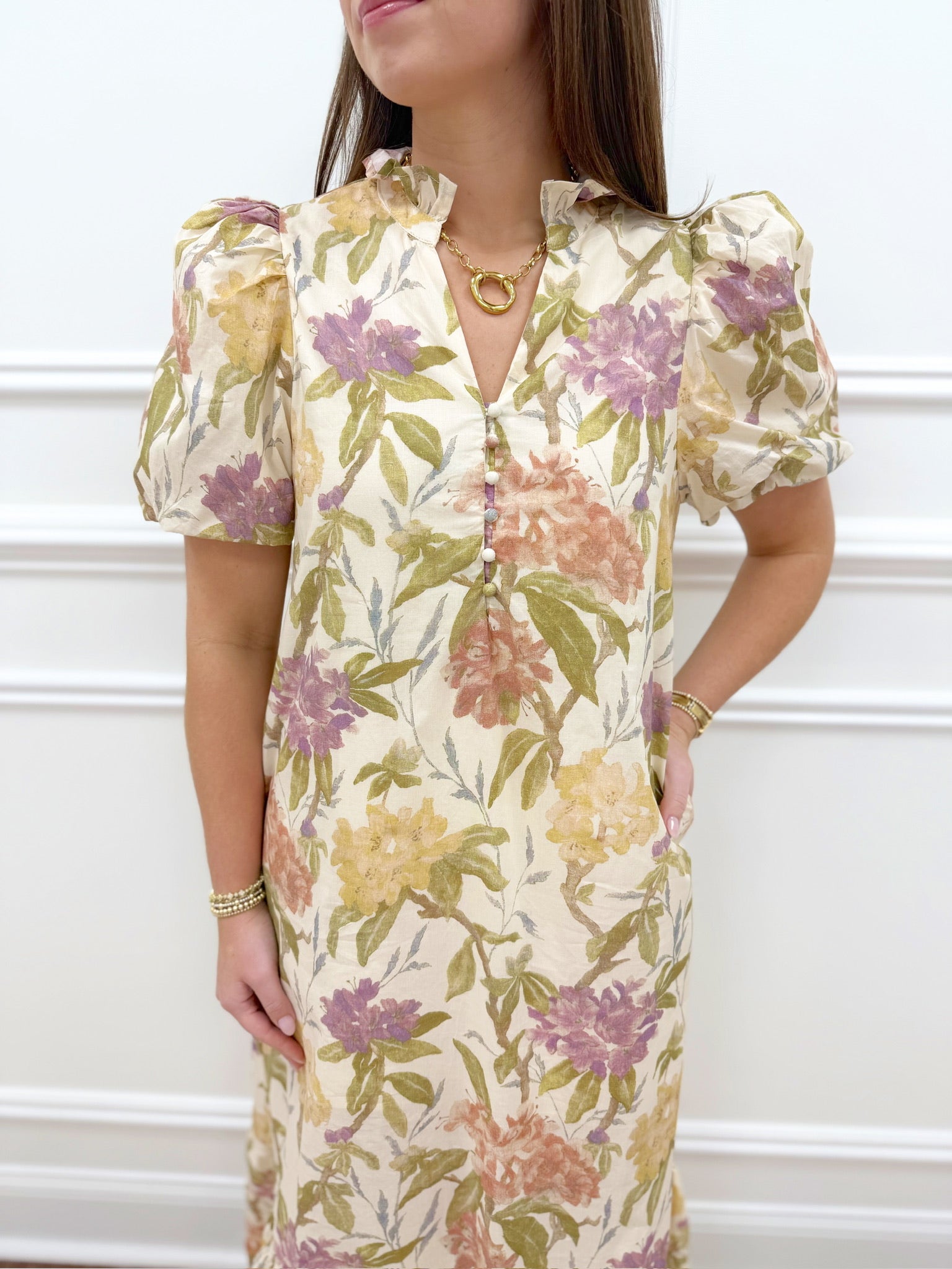 Welcome spring in style with the Cassidy Floral Dress. This charming piece captures the essence of the season with its vibrant floral pattern, making it the perfect transition from winter to warmer days. The flattering silhouette and soft fabric create an effortlessly cute look that works for everything from coffee dates to garden parties. Layer it with a denim jacket on cooler mornings, or wear it solo as temperatures rise. The Cassidy Floral Dress is your answer to building a spring wardrobe that feels fresh, feminine, and undeniably wearable.