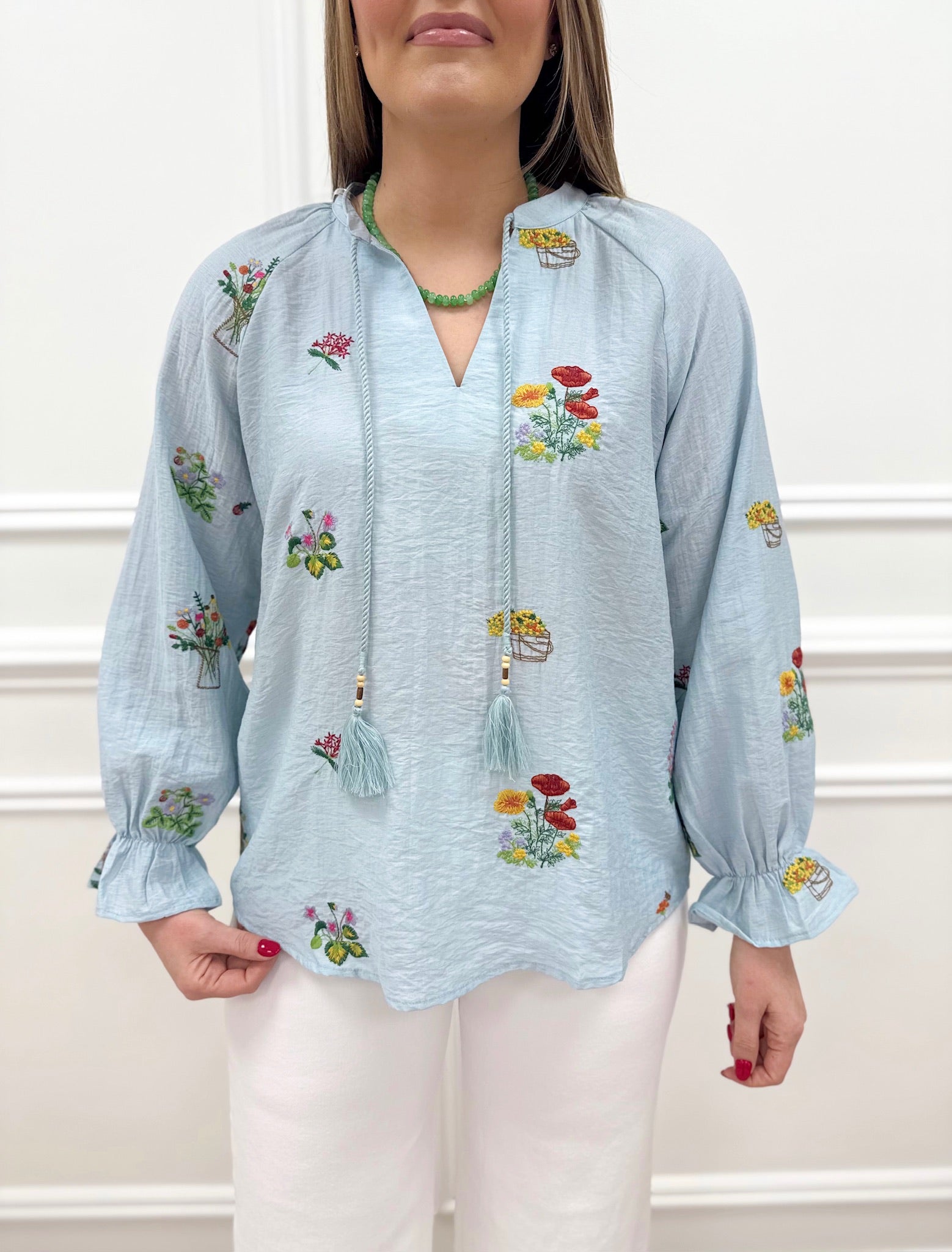 Meet the Devin Floral Top—your new spring essential. This adorable lightweight piece features a charming floral design that transitions beautifully from winter into warmer weather. Crafted from breathable fabric, it's comfortable enough for all-day wear and pairs effortlessly with your favorite bottoms. Available in sizes S-L, the Devin Floral Top flatters every frame while keeping you cool and stylish.