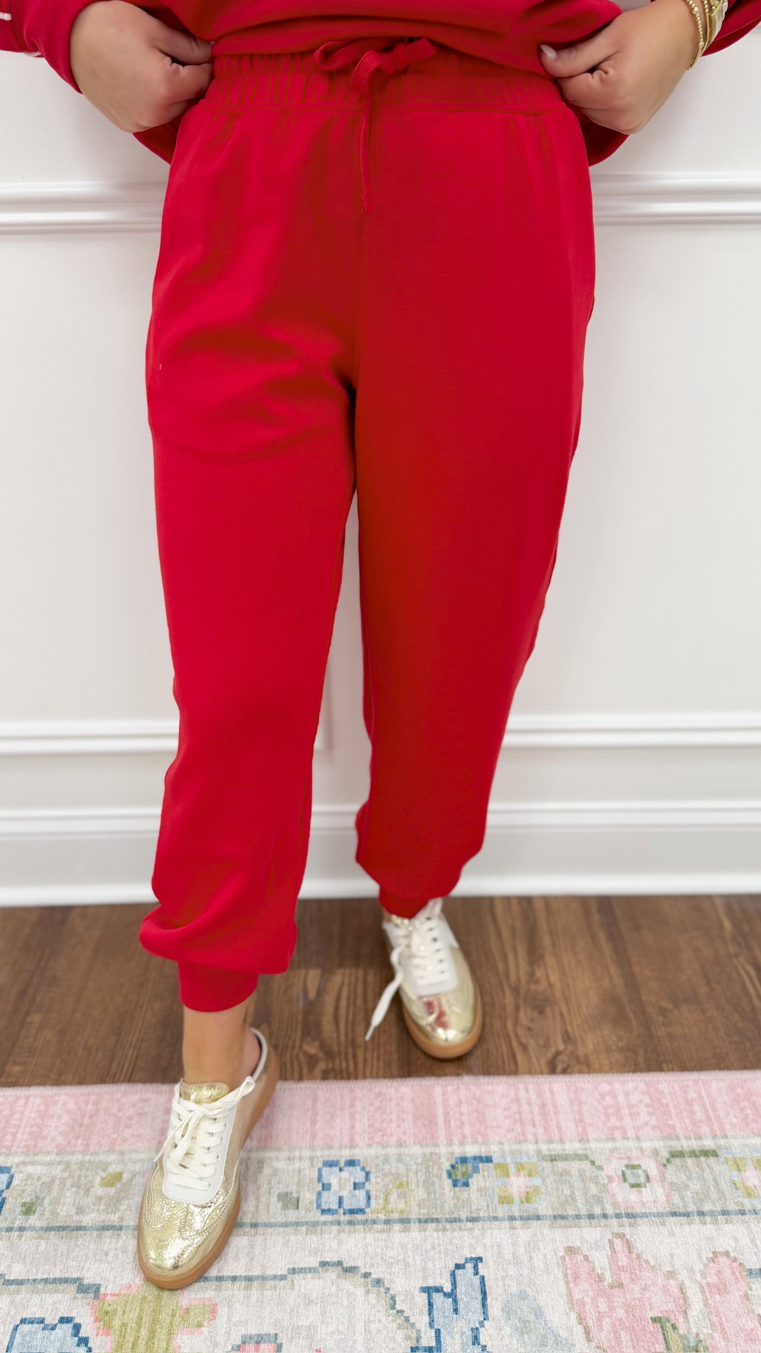 Experience ultimate comfort in these luxuriously soft scuba material joggers. Designed for effortless style, they feature an adjustable drawstring for a customized fit and a relaxed silhouette perfect for lounging or casual outings. Available in sizes small through large, these joggers deliver that coveted cloud-like feel you'll want to wear every day. The premium fabric moves with you while maintaining its shape, making them an essential addition to your everyday wardrobe.