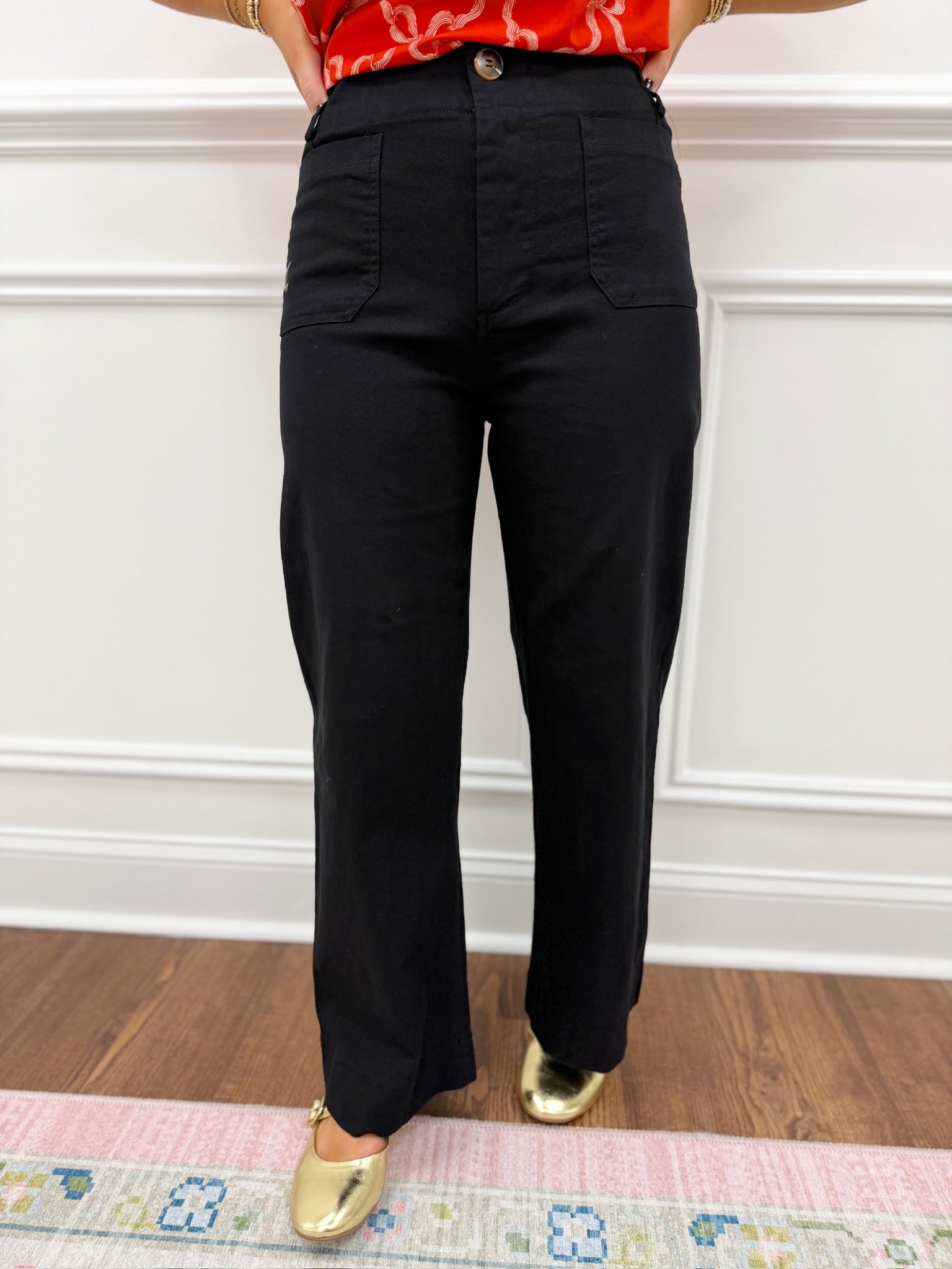The Mallory Black Pants are the cutest wide-leg jeans featuring patch pocket details. Available in sizes small through large with a true-to-size fit, these lightweight pants are perfect for year round wear. They combine comfort and trendy design for an effortless, chic look.