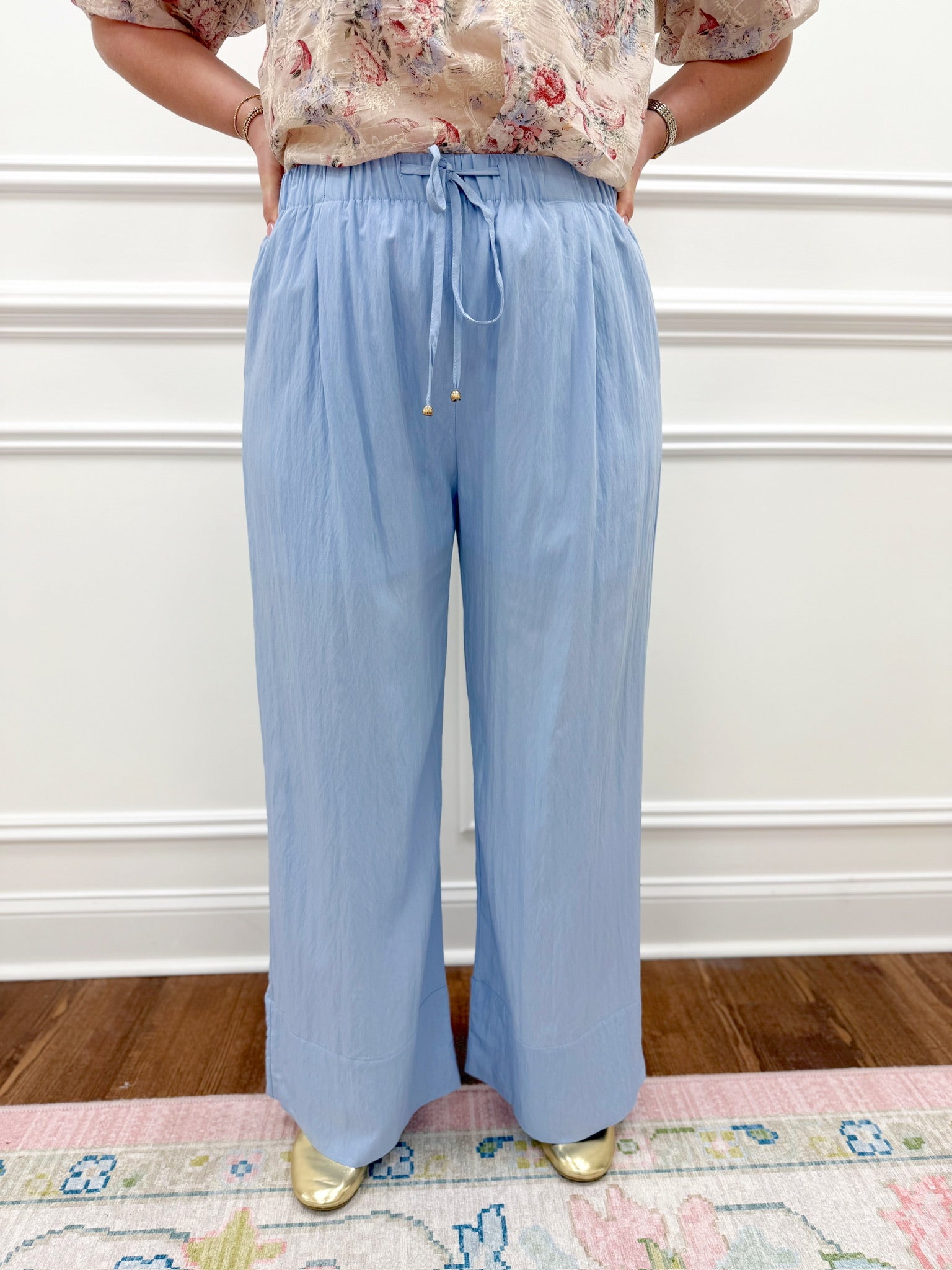 The Tilly Blue Pants are the must-have transitional piece you need right now. These lightweight pants are designed to take you seamlessly from winter into spring with effortless style. Cut to run true to size, they deliver a reliable fit—Macie wears the large for a comfortable, flattering silhouette. The breathable fabric keeps you cool as temperatures rise, while the versatile blue hue pairs with everything from casual tees to polished blouses. Whether you're dressing them down with sneakers or up with heels, these pants offer the perfect balance of comfort and sophistication. An essential addition to your seasonal wardrobe rotation.