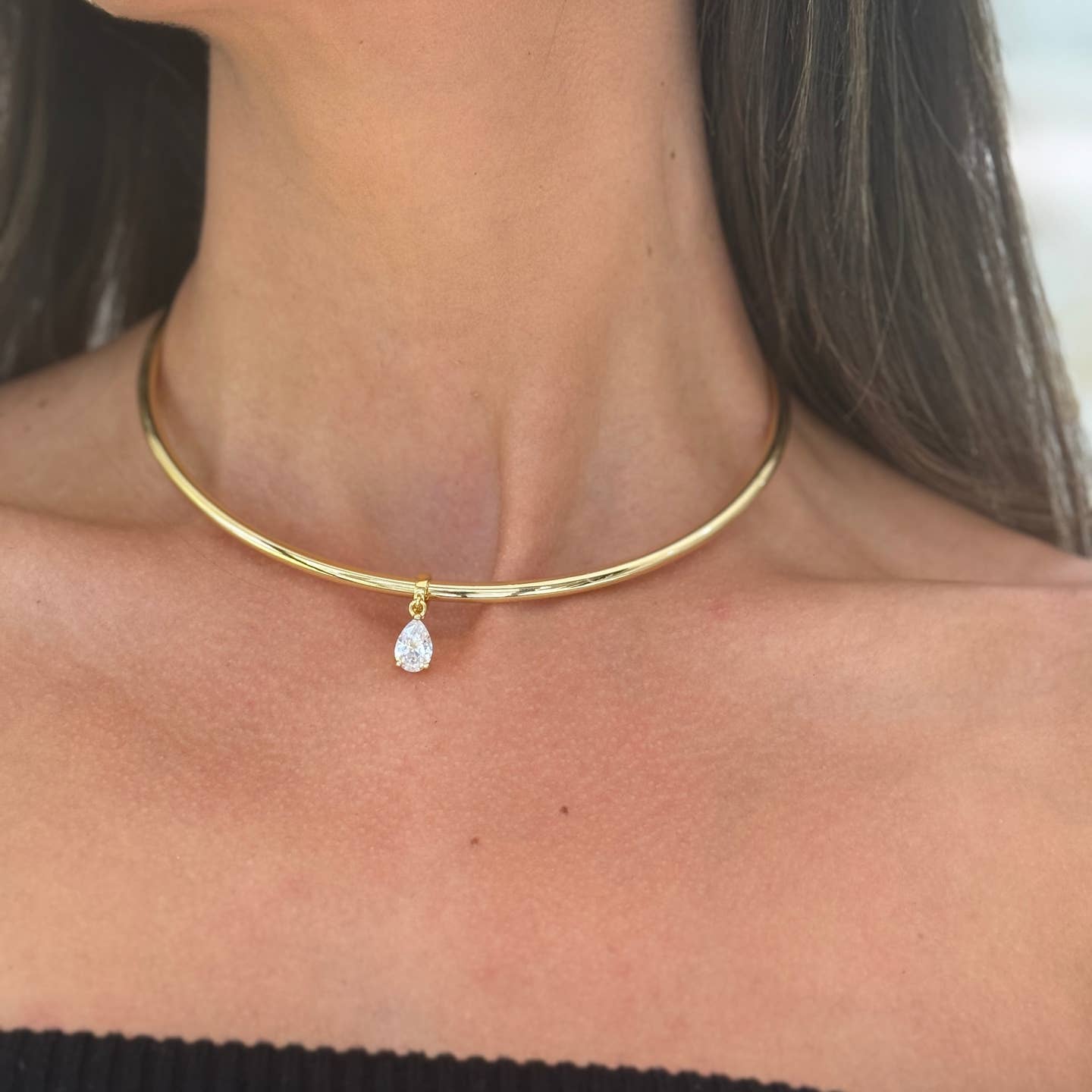 The Pear Cut Necklace Cuff combines sleek design with versatility, featuring a removable pendant that allows you to customize your look. Its cuff style provides a comfortable yet secure fit around the neck, making it an elegant choice for both everyday wear and special occasions. This necklace effortlessly adapts to your style, offering both statement appeal and practical flexibility.