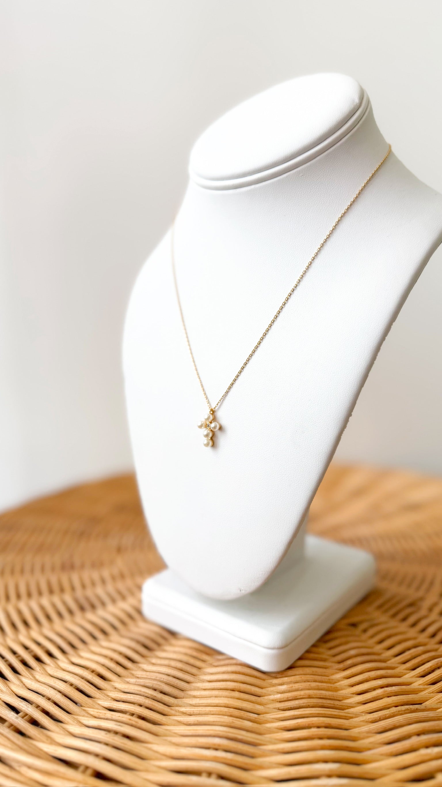 The Betty Cross Necklace combines timeless elegance with everyday wearability in one precious piece. Featuring a delicate pearl cross pendant, this charming necklace adds a touch of grace to any outfit—from casual weekends to polished weekdays. Its refined design works beautifully layered or worn solo, making it the versatile staple that transitions seamlessly through your day. Subtle yet striking, this is the necklace you'll treasure for years to come.