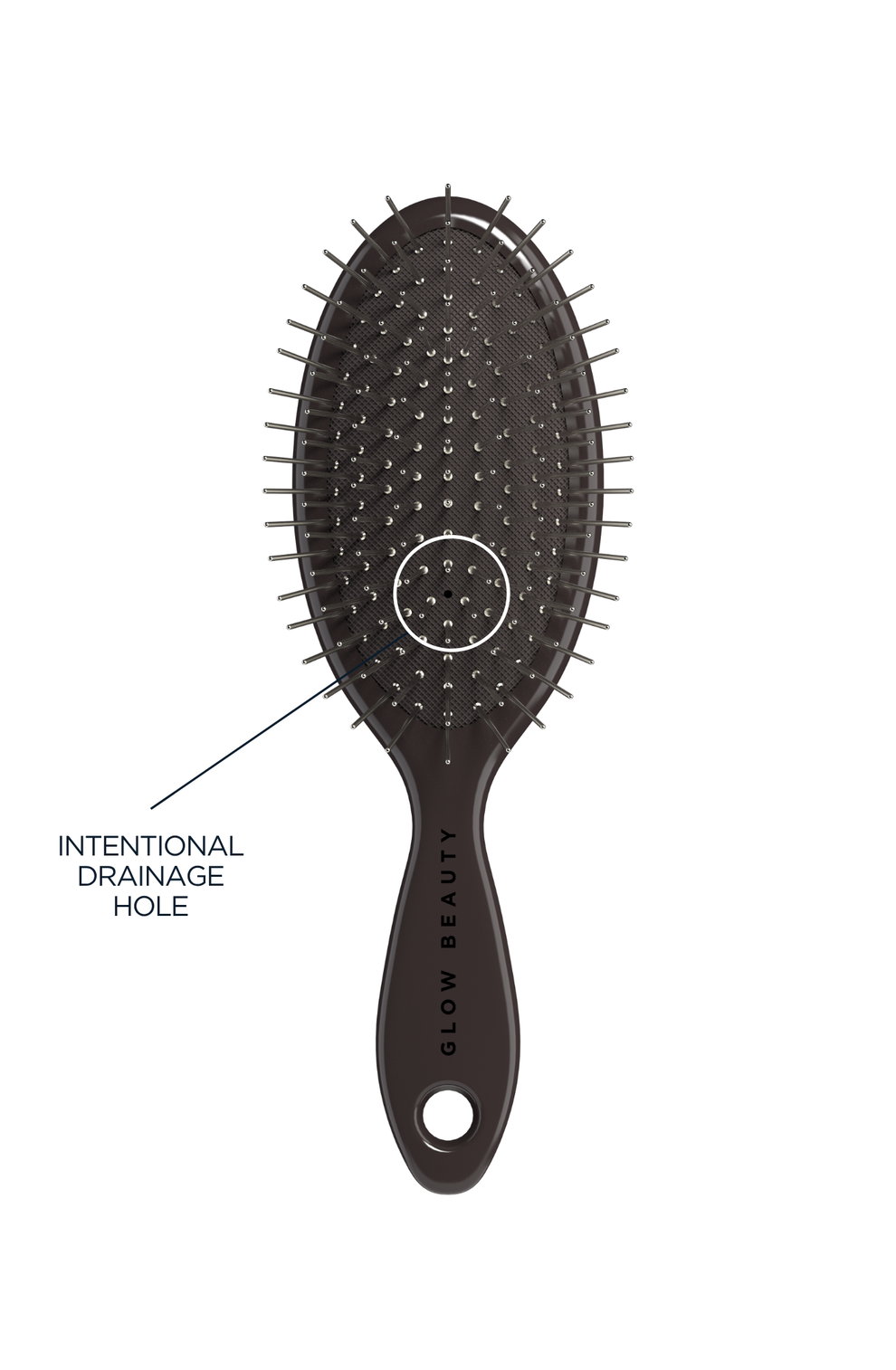 Designed for convenience, it boasts a drainage hole and a keychain hole, making it your trusty companion everywhere you go. No more hair worries! The metal bristles gently caress the scalp, offering a soothing exfoliation and aiding in distributing natural oils and products through your hair."