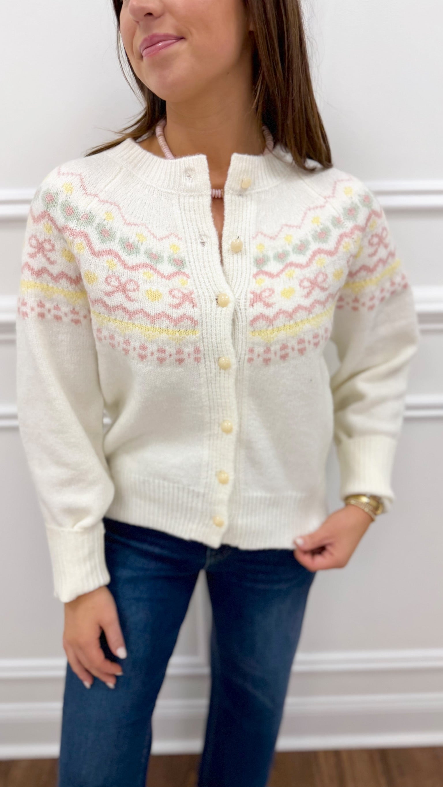 Elevate your everyday wardrobe with the Allie Printed Cardigan, a versatile cream layer that effortlessly transitions from season to season. Featuring an eye-catching print design, this cardigan pairs beautifully with everything from casual tees to polished dresses. Available in sizes small through large and cut to fit true to size, you'll find your perfect match. Slip it on for instant sophistication and comfort that lasts all day long.
