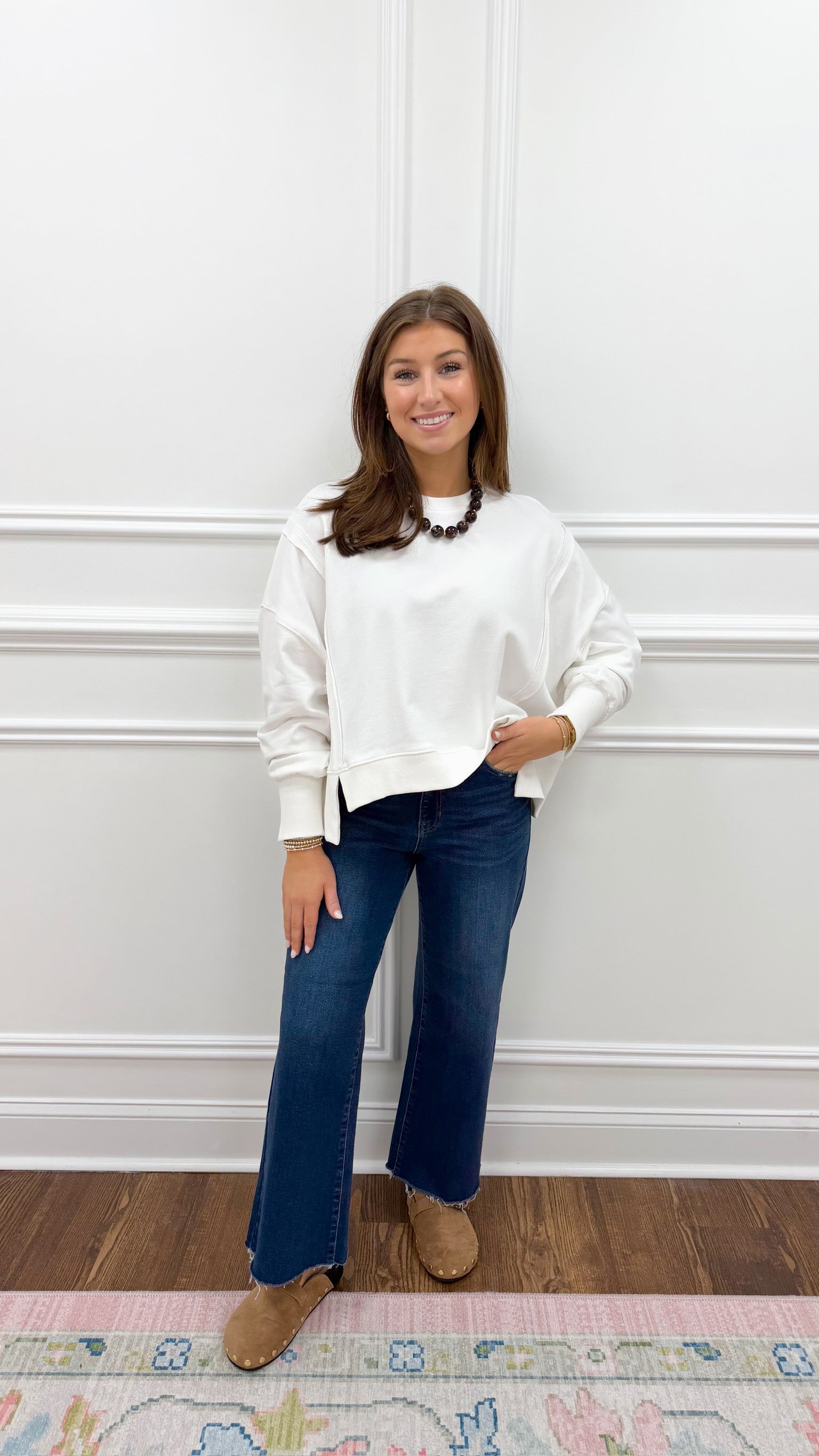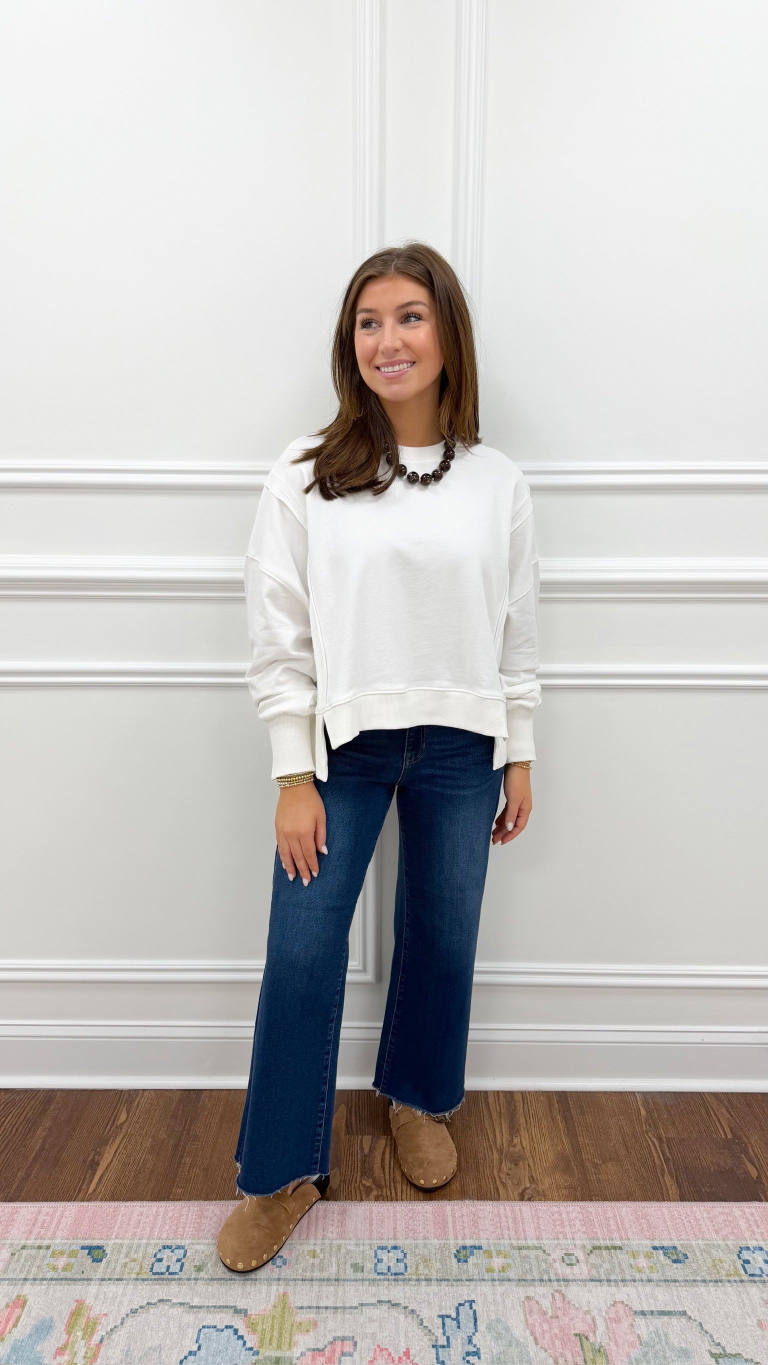 The Madalyn White Top is your go-to essential for effortless everyday style. Available in sizes XS through Large, this versatile piece runs true to size and delivers a flattering, slightly oversized silhouette that works beautifully layered or worn solo. Perfect for creating countless outfit combinations, from casual weekends to polished weekday looks. A wardrobe staple that transitions seamlessly through every season.