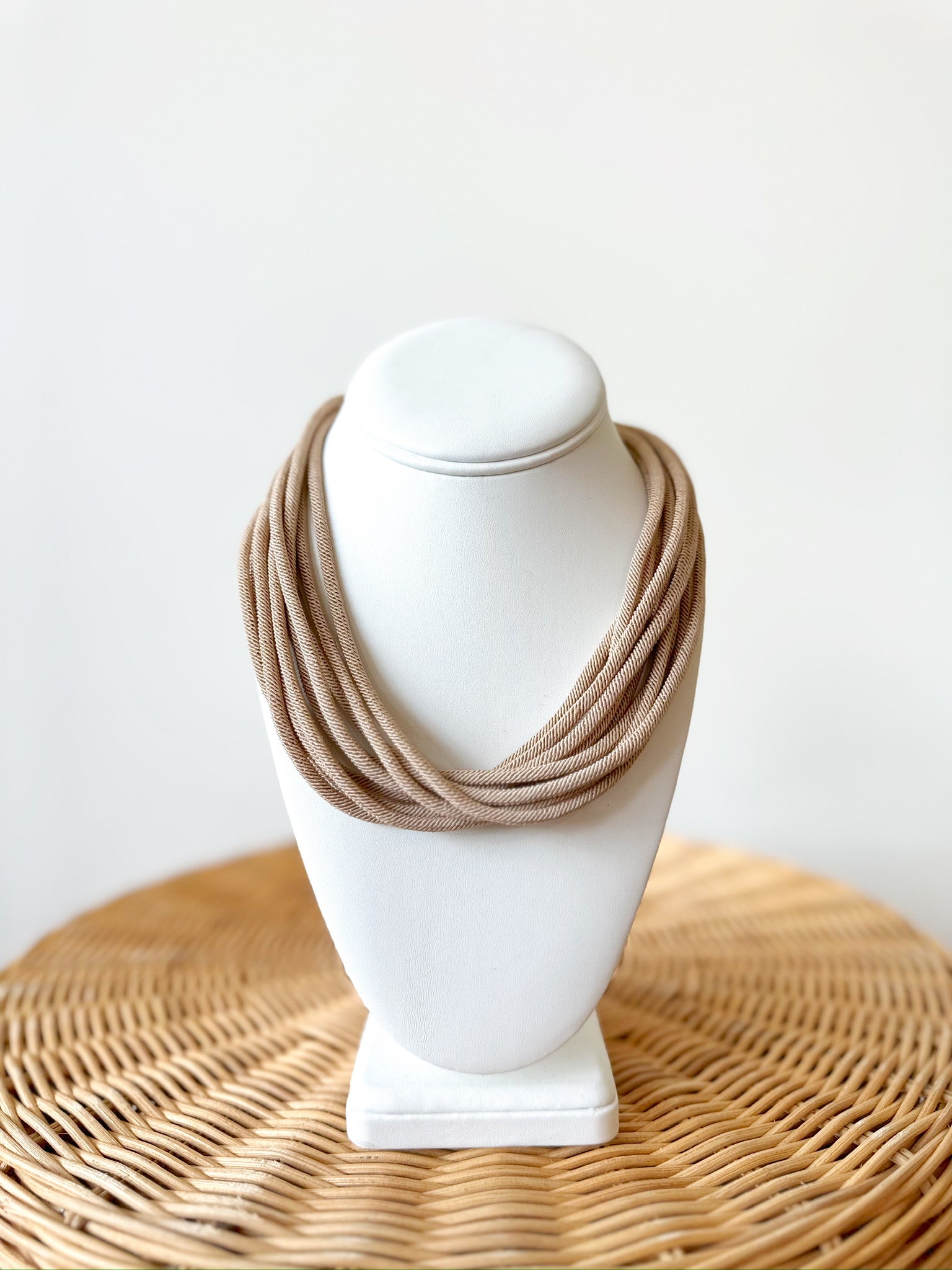 The Ella Rope Necklace is a best-selling, mid-sized statement piece that effortlessly enhances any outfit. Offered in multiple colors, including this rich beige shade, it’s a favorite for fall and a versatile accessory for year-round wear. Perfect for adding a pop of style with ease, this necklace stands out whether worn alone or layered.