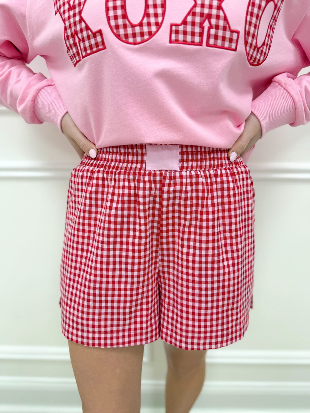 Sallie Gingham Shorts-Pink