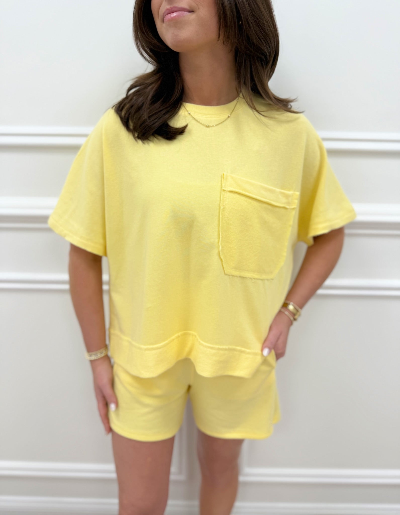 Haylen Yellow Top is a vibrant, everyday essential that delivers effortless style. This classic tee features a bright yellow hue that pairs seamlessly with any wardrobe. The soft, breathable fabric ensures all-day comfort, while the relaxed fit flatters all body types. Runs true to size for a perfect fit every time. A versatile staple you'll reach for again and again.