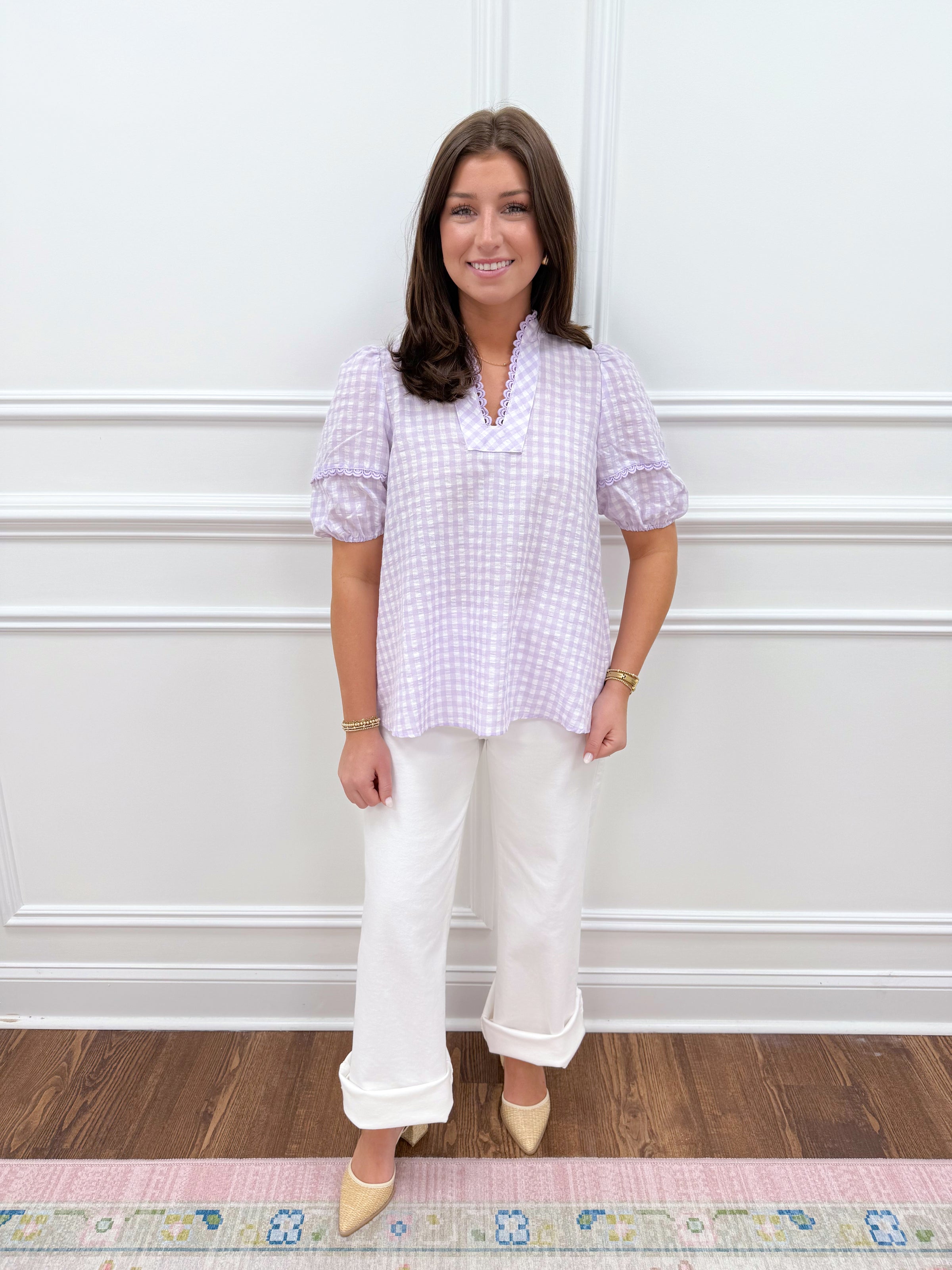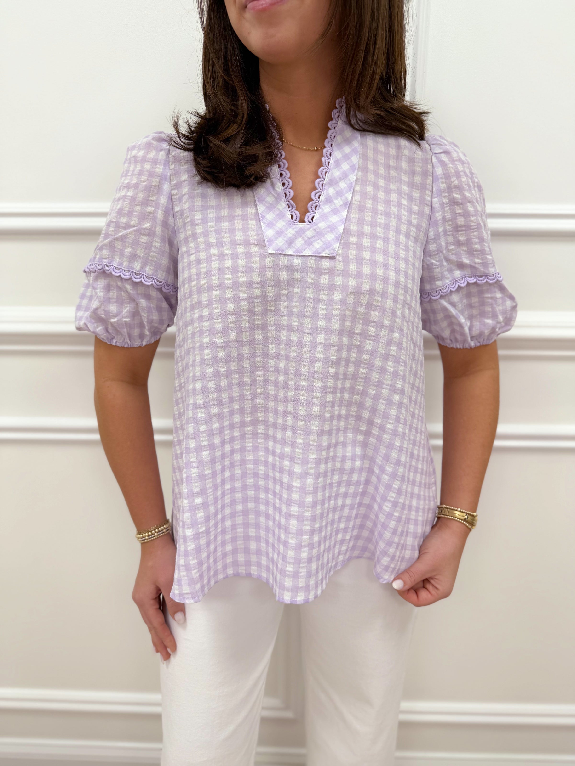 Perfect for spring running and everyday wear, the Ella Gingham Top in purple features a flattering slight puff sleeve design. The classic gingham pattern adds a touch of charm to your active wardrobe. Available in sizes S-XL, this versatile top transitions seamlessly from the track to casual outings. Lightweight and comfortable, it's an essential piece for the season ahead.
