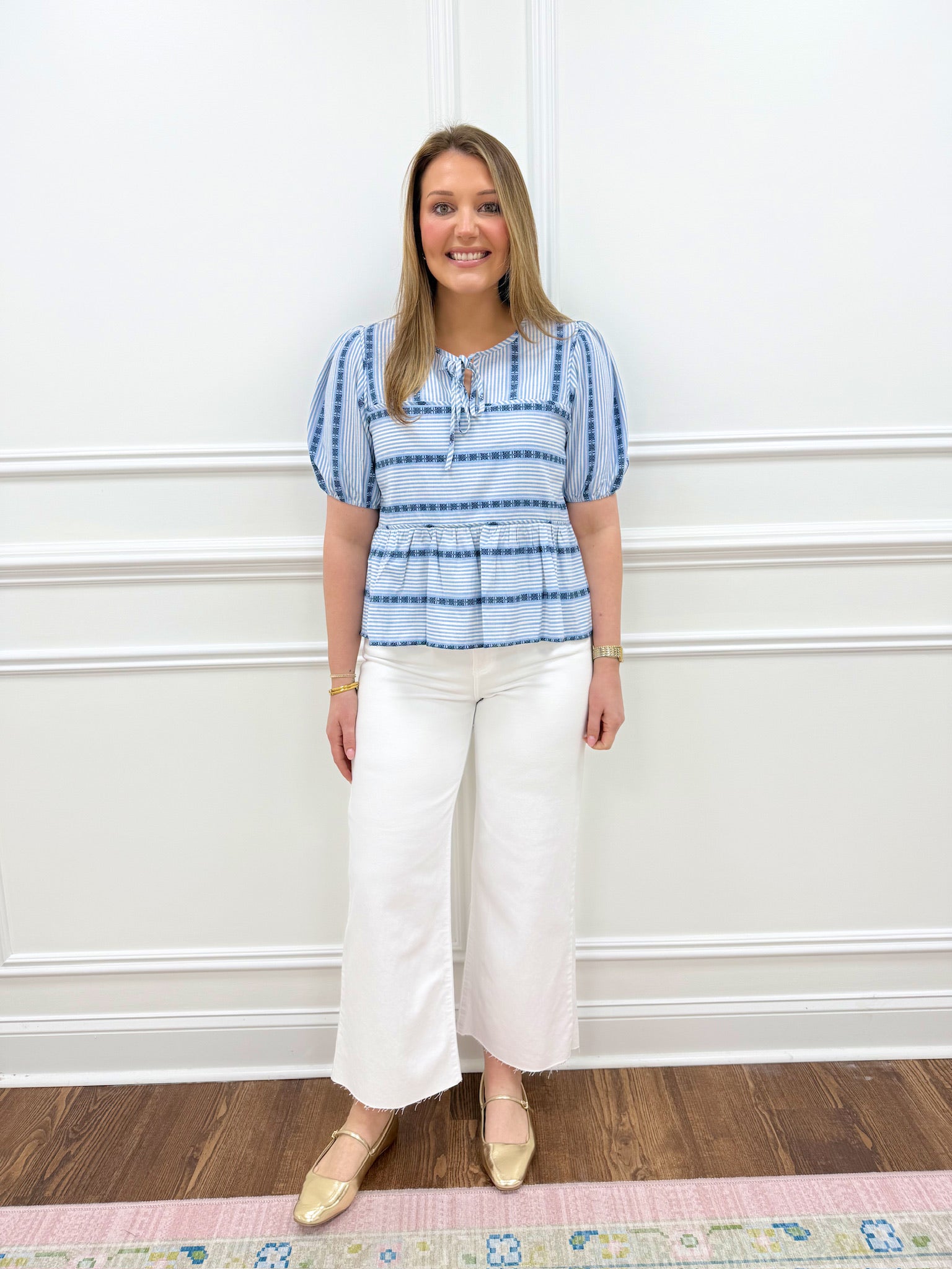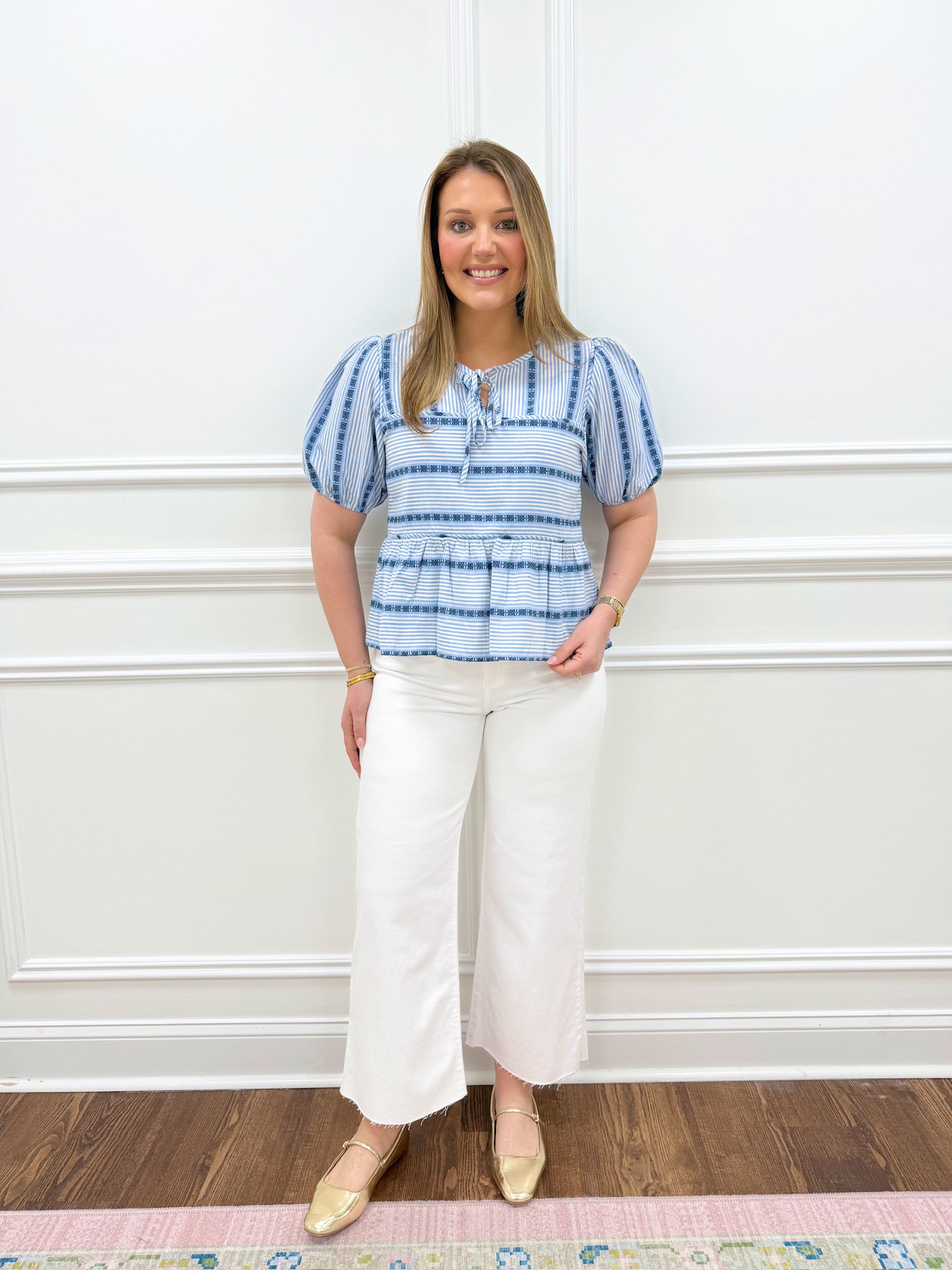 The Zuri Printed Top features a flattering silhouette with delicate puff sleeves that add a touch of feminine detail. Designed to fit true to size, this versatile piece transitions seamlessly from casual to dressed-up occasions. Available in sizes Small through Large, with Macie wearing the Medium for reference. Perfect for layering or wearing solo, the Zuri brings effortless style to any wardrobe.