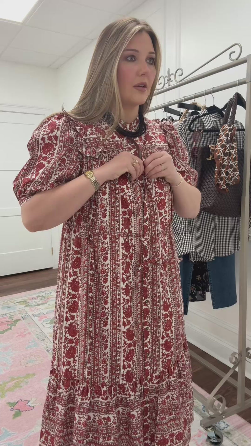 This Katelyn Printed Dress features a playful cream and brick red print on a flattering midi silhouette. The dress cinches... Details